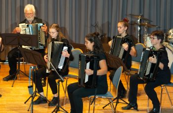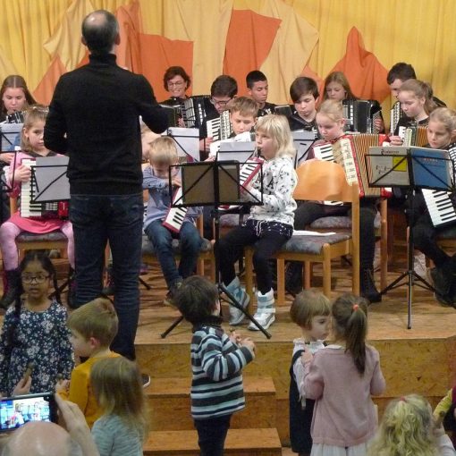 Zum großen Finale kam auch das Schülerorchester wieder mit auf die Bühne. Gemeinsam präsentierten sich die fast 40 Akkordeonisten jeden Alters. Vangelis‘ „Chariots of Fire“ war der grandiose Abschluss eines gelungenen Konzertnachmittags.