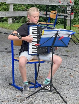 Über 50 Kinder, Jugendliche und Erwachsene tanzten, sangen, musizierten auf der Melodica und dem Akkordeon; solistisch, im Duett und im Ensemble. Die Wiese des Reitplatzes der Ludwig-Guttmann-Schule bot den weit über 100 Besuchern einen schönen Rahmen für den gelungenen Schuljahresabschluss von AccoMusica.