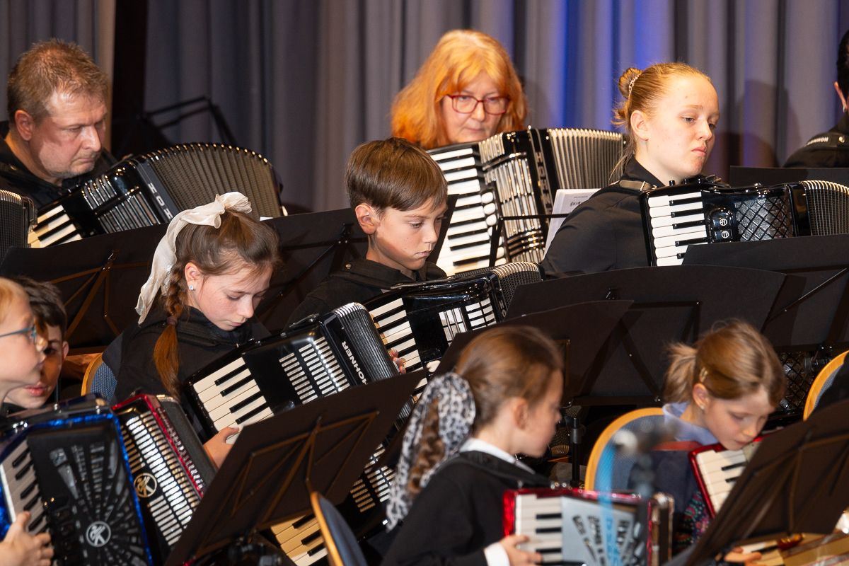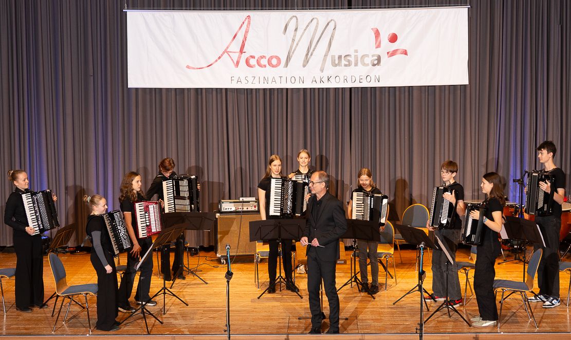 Im Anschluss zeigte das Jugendorchester sein Können: Mit der „Suite Contraire“, der „Suite der Gegensätze“ von Hermann Illenberger hatte es sich, ebenfalls unter Leitung von Uwe Müller, beim diesjährigen 14. Akkordeonorchester-Festival in Innsbruck im Rahmen der dortigen Wertungsspiele 39 von 50 Punkten erspielt. Mit Fingerfertigkeit und Spielfreude bewiesen die Nachwuchsakkordeonisten nun, dass diese Wertung verdient war.