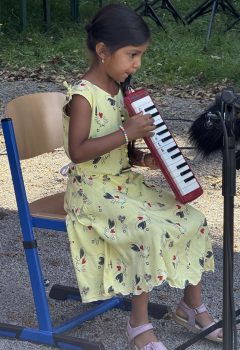 Danach ging es schwungvoll weiter: Ob mit dem Tanz „Sommerfest am Weiher“ der Musimo-Kinder und den Tänzen und Liedern der anderen Gruppen der musikalischen Frühförderung unter der Leitung von Christiane Becker, oder den solistischen Beiträgen der Melodica- und AkkoKids, die jungen Musiker begeisterten die Zuhörer. Für einige von ihnen war es das erste Mal vor Publikum, aber jedes Kind überwand sein Lampenfieber und erhielt den verdienten Applaus.