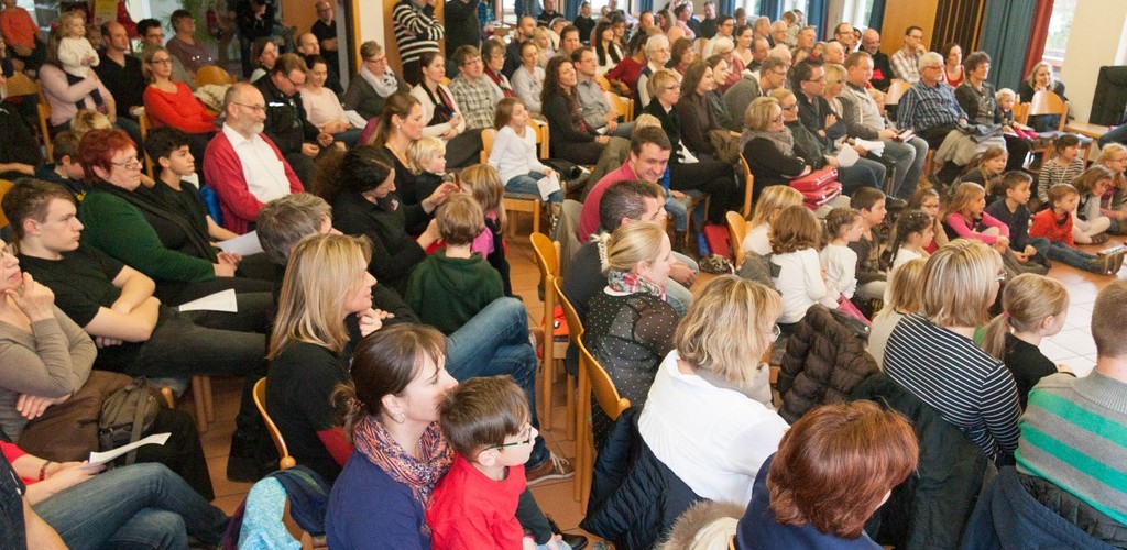 Den emotionalen Höhepunkt bildete der traditionelle gemeinsame Auftritt aller musikalischen Akteure mit „Jingle bells“. Bei einem Gläschen Sekt oder Saft und einer Partybrezel war dann noch Gelegenheit, in geselliger Runde Rückblick und Ausblick zu halten.