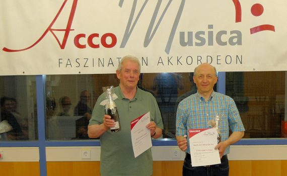 Im Rahmen der diesjährigen Mitgliederversammlung ehrte AccoMusica Bernhard Föhrenbacher und Gerd Eble.