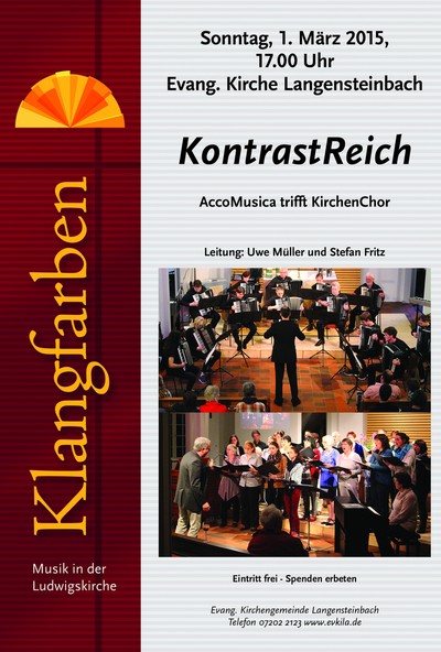 „KontrastReich“ ist eine Konzertreihe, die AccoMusica in unregelmäßigen Abständen mit unterschiedlichen Partnern zur Aufführung bringt.
