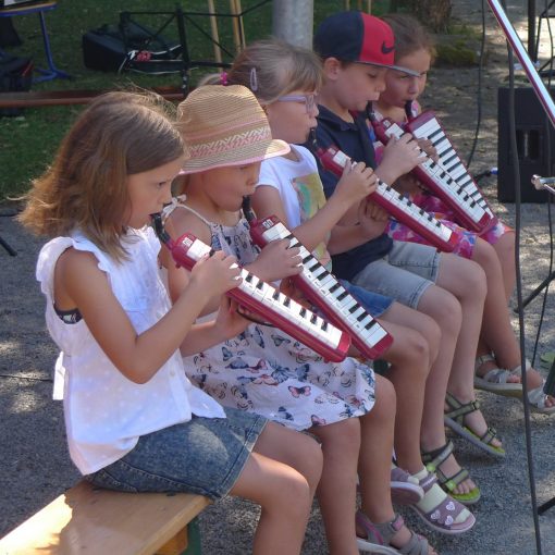 Das grandiose Wetter bot die perfekte Voraussetzung, um gemeinsam den zahlreichen Solo- und Duoauftritten mit dem Akkordeon zu lauschen. Viele der jungen Künstler spielten erstmalig vor größerem Publikum, jedoch gelang es allen, ihr Musikstück souverän vorzutragen, wofür sie mit reichlich Applaus belohnt wurden. Auch das Schülerorchester sowie das Jugendensemble gaben eine kleine Darbietung zum Besten.